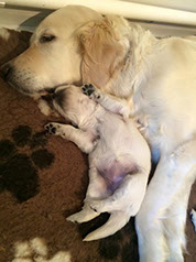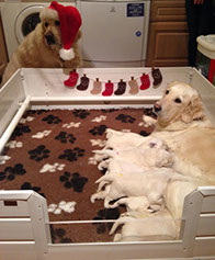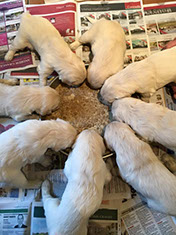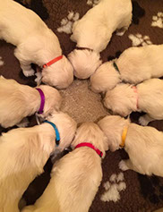 Lily's first litter of puppies was born on Tuesday 9th December 2014. All eight puppies were delivered successfully - all breathing and healthy. Lily is being a wonderful mummy and is doing a great job at looking after her babies.